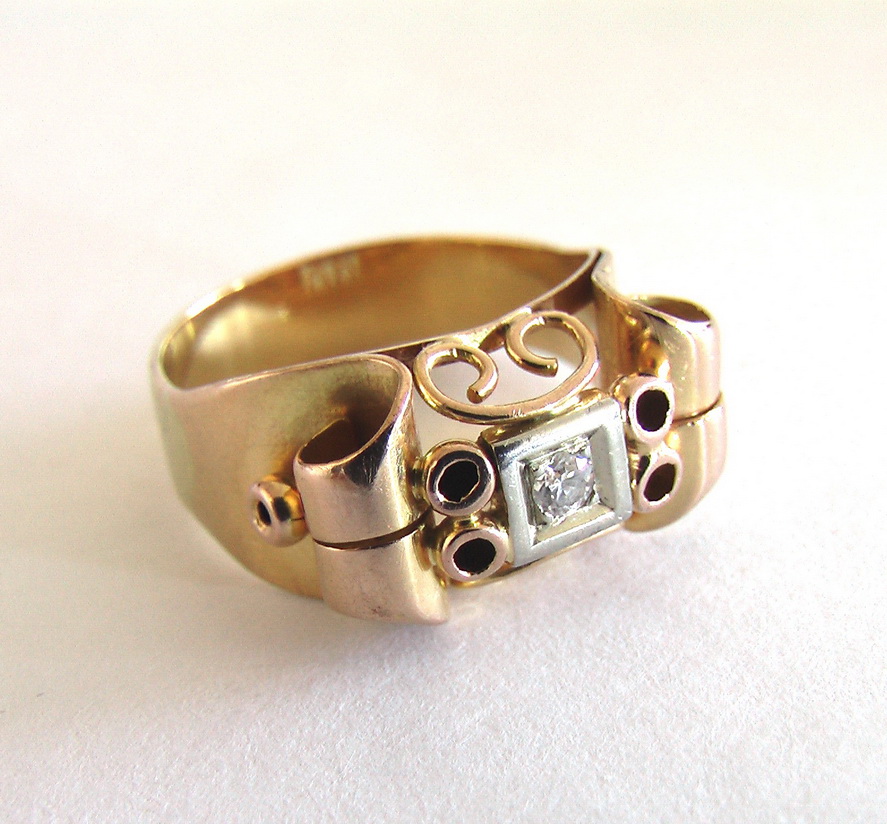 перстень Шевалье старинный с бриллиантом золотой
